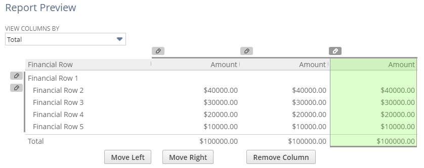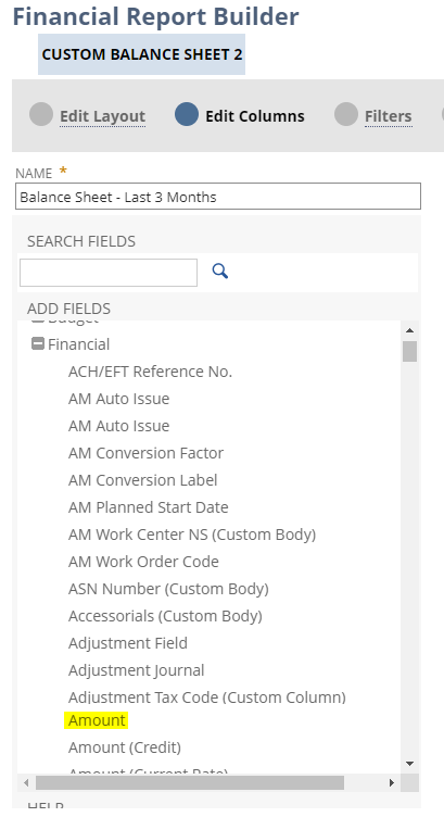 - Click on Edit Columns on the Financial Report Builder Menu