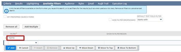 Finally, you must configure a filter that will be used to segment the sublist data based on the correct value.  In this example, we want to see overdue invoices segmented by customer, so we’ll use Name as our filter.