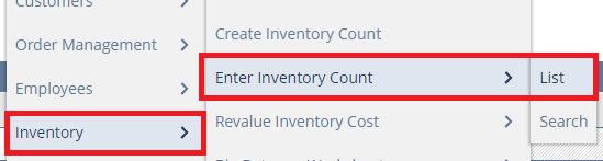 - Go to Transactions > Inventory > Enter Inventory Count > List.