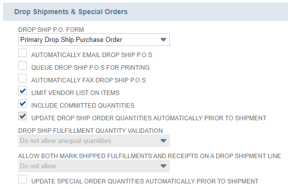 Configuring Drop Shipments and Special Orders