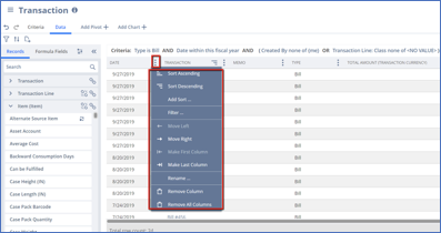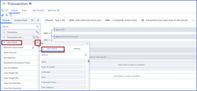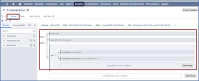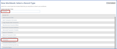 Please note, there is a draw back to 2019.2 release of SuiteAnalytics workbook being that custom transaction types will no longer be used as the root record type. Instead, you will need to select the standard Transaction record and apply the Type criteria. It is within the Type criteria, that you can select the custom transaction.