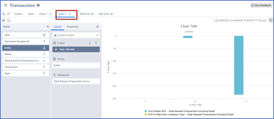 By clicking on the Add Chart tab, users can create multiple charts, much like Chart wizard in Microsoft Excel, to display data information in chart format.