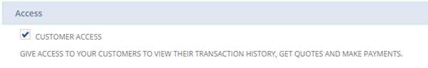 9. To assign individual logins to the customer’s contacts, on the Access tab, check the Access box next to the contacts you want to grant access to. If this is a new customer, you might need to save the record before you can view contacts on the Access tab.