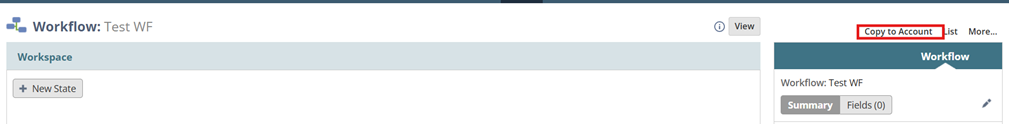 2. Edit the Record of Choice and Select Copy to Account – For example, if you would like to copy over a workflow from one NS instance to another, in Edit view, click Copy to Account at the top right.