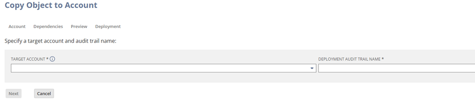 3. Select a Target Account and enter a Deployment Audit Trail Name
